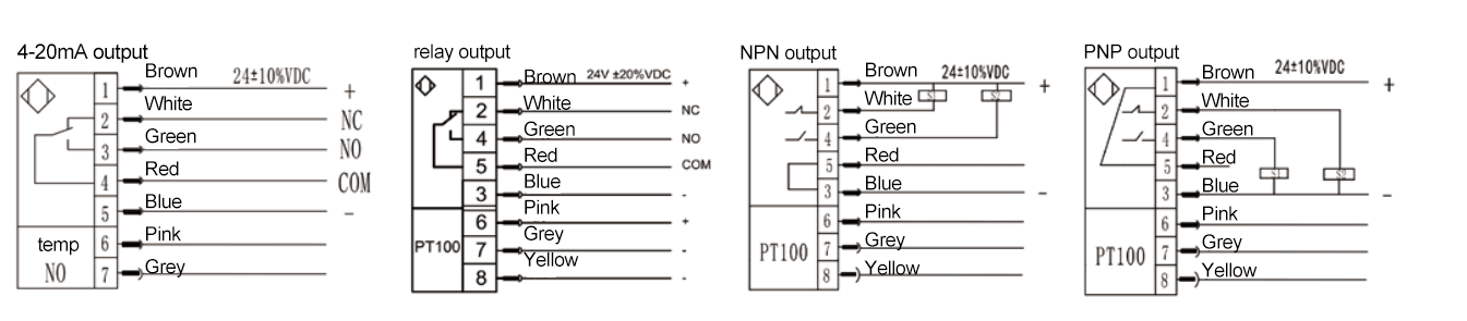 -Signal output: PNP, NPN, relay normally open + normally closed (SPDT)