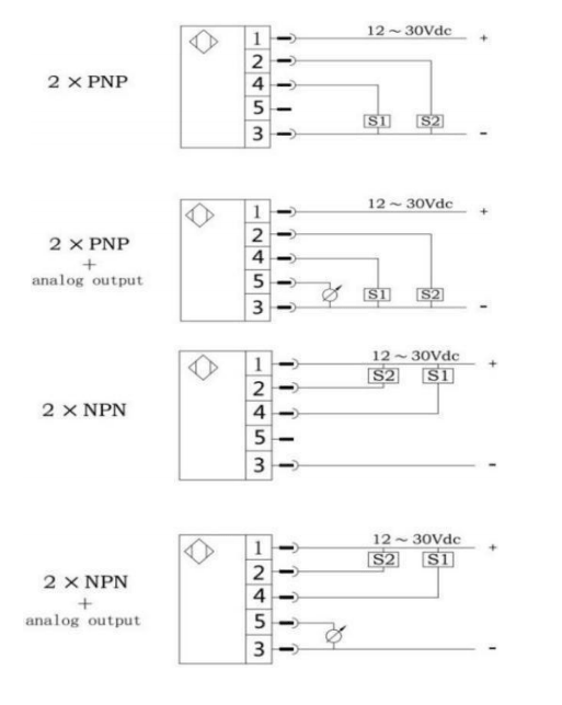 switched output:Output type: PNP, NPN optional normally open normally closed can be set