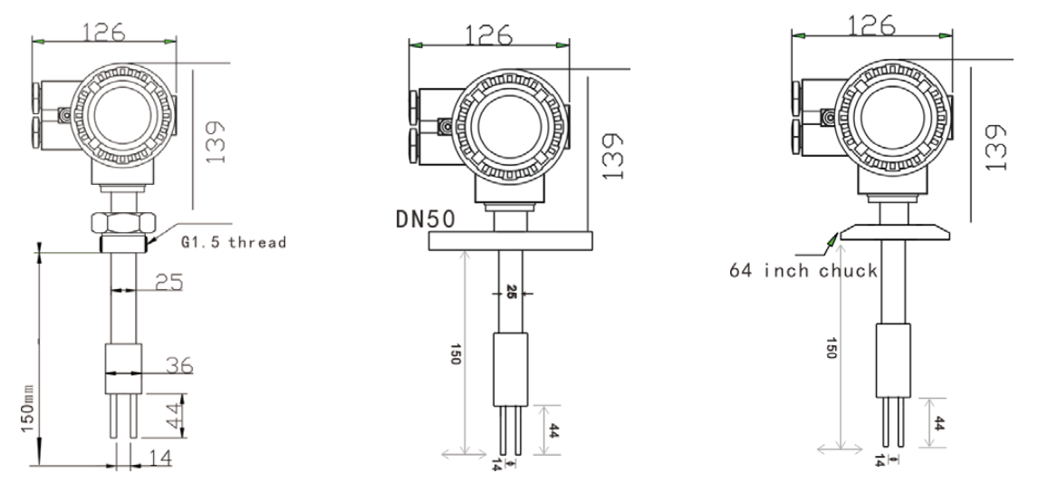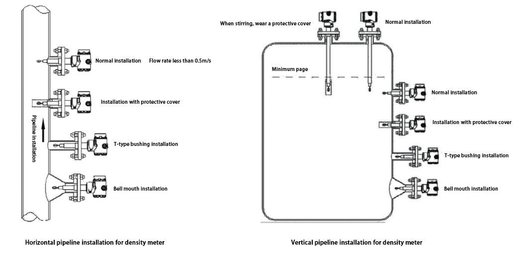 The insertion-type density (concentration) meter is installed by direct insertion, making it widely applicable for media density measurement in pipelines, open tanks, and closed containers. The fluid density is directly determined by the vibration frequency of the tuning fork immersed in the medium. A built-in temperature sensor provides temperature compensation.